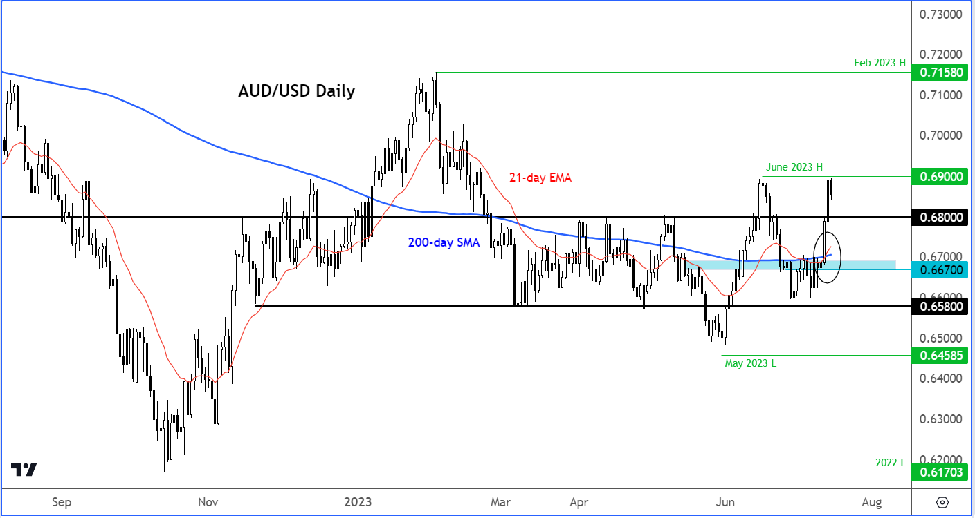 对于澳元/美元来说,关键支撑位现在位于0.6800附近,这里之前是一个关键点位。鉴于本周的突破,多头不希望看到汇率现在回到该点位以下。