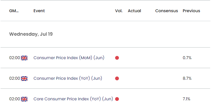 然而,在6月会议上出现72的分歧,英国CPI的大幅放缓可能会导致货币政策委员会(MPC)内部出现更大的分歧,而贝利行长及其同僚是否会在83日的下一次利率决议中改变前瞻性指引还有待观察,因为“CPI通胀预计将在今年进一步大幅下降。